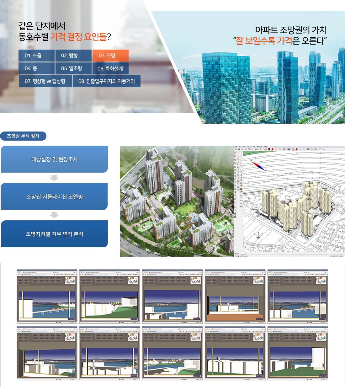 있느냐의 여부의 판단과 신축건축물로써 외부 주변의 경관이나 조망등을 얼마나 확보할 수 있느냐를 판단하는 잣대의 기준을 설정, 분석하여 컨설팅함