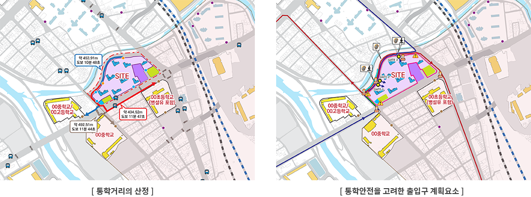 ·조사항목: 공사중 통학안전 대책, 학생 통학로 현황, 건설공사장 진출입구, 공사차량 이동 동선 조사, 타워크레인 등 건설기계 설치 위치, 종류, 운행반경 조사