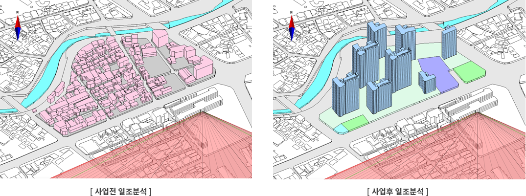 ·조사항목: 일조 피해건물 현황, 일조 가해건물, 지형, 구조물 등 현황, 사업 전·후 물리적 환경 변화, 사업으로 인한 학교 일조권 영향
